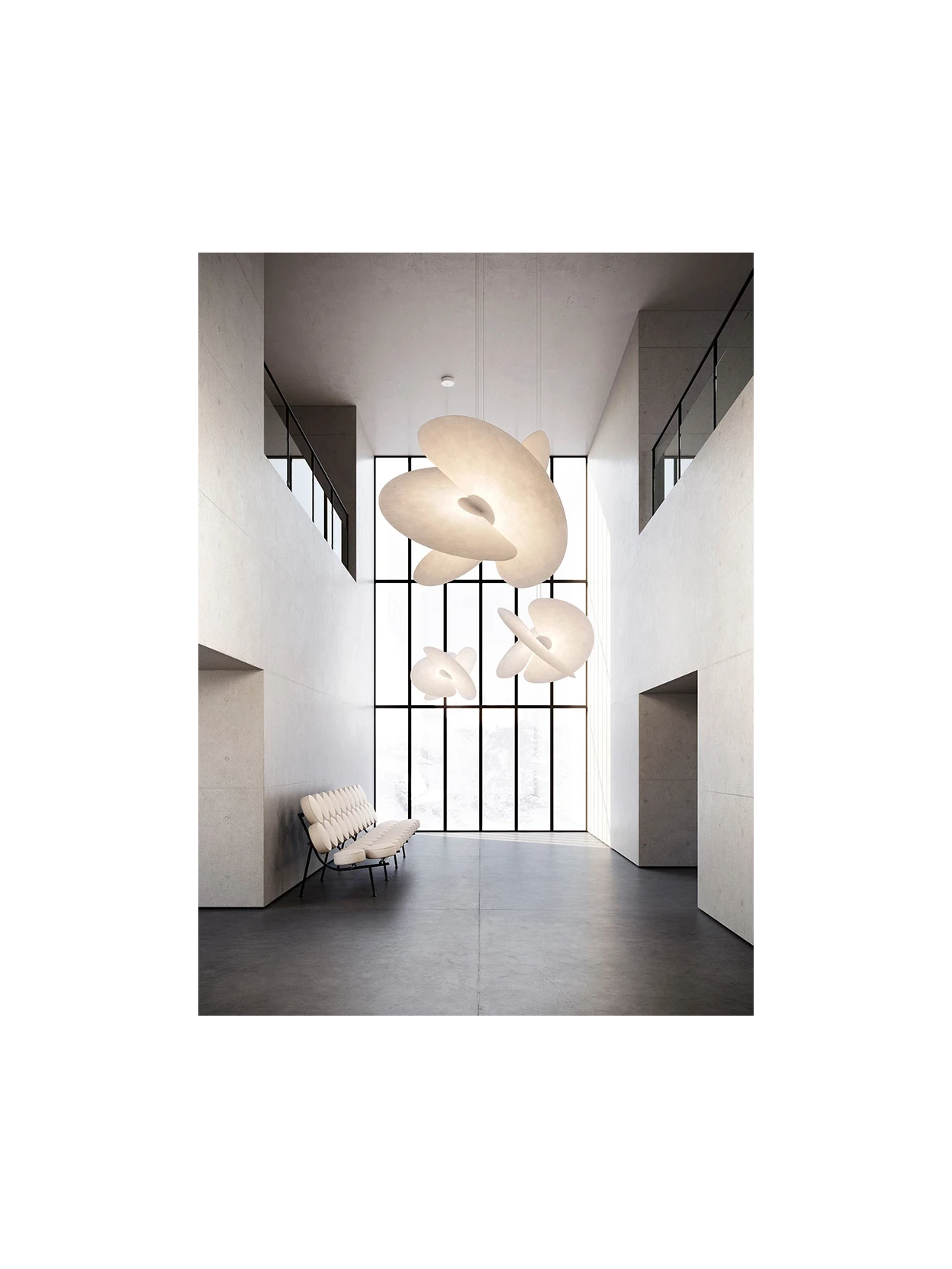 La Levante di Luceplan è una lampada a sospensione di grande impatto scenico, progettata per valorizzare gli interni con un equilibrio perfetto tra leggerezza visiva e prestazioni luminose. La struttura in alluminio con finitura bianco opaco si integra armoniosamente in contesti moderni e raffinati, mentre le tre vele che compongono il diffusore creano un volume morbido e dinamico, ideale per chi desidera un’illuminazione elegante ma non invadente.