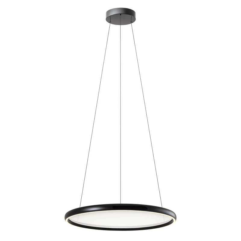 Vance di Redo Group è una sospensione LED per interni dal design elegante e moderno. Realizzata in metallo nero lucido e alluminio pressofuso, è dotata di diffusore in silicone bianco per luce diretta e elemento centrale in PMMA trasparente. Grazie al telecomando incluso (batterie AAA non fornite), permette il controllo di accensione, selezione delle luci (anello, centro o entrambi), dimmerazione, regolazione della temperatura colore (da bianco caldo a freddo) e funzione sleep.
