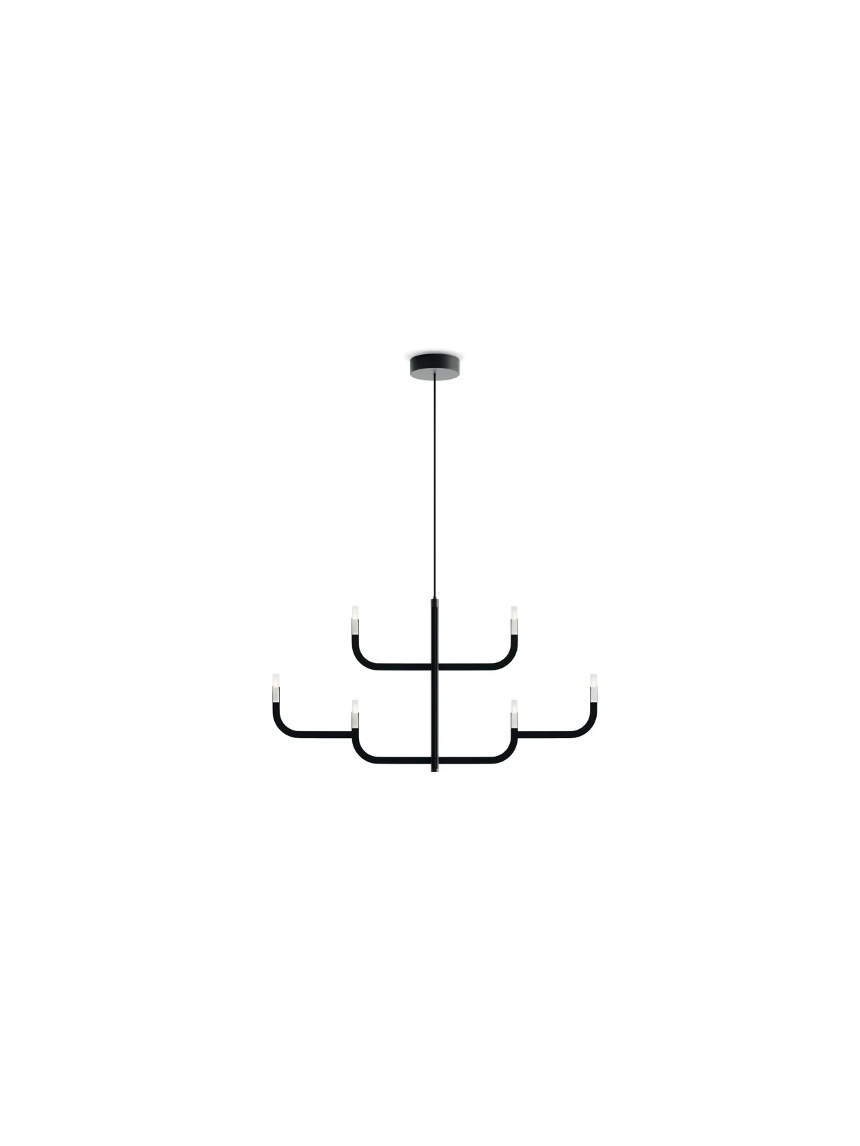Il lampadario diffonde una luce LED calda e performante (21W, 2700K), capace di valorizzare l’ambiente senza appesantirlo. Il profilo sottile e le linee decise rendono il design leggero, dinamico e di grande impatto visivo. Disponibile nelle finiture nero opaco e oro satinato, J-us offre versatilità stilistica e sofisticatezza senza tempo. Le opzioni dimmable (push, DALI o phase-cut) consentono un controllo totale dell’atmosfera, rendendo la lampada ideale per living, sale da pranzo, spazi contract o ambienti eleganti che richiedono un’illuminazione scenografica e funzionale.