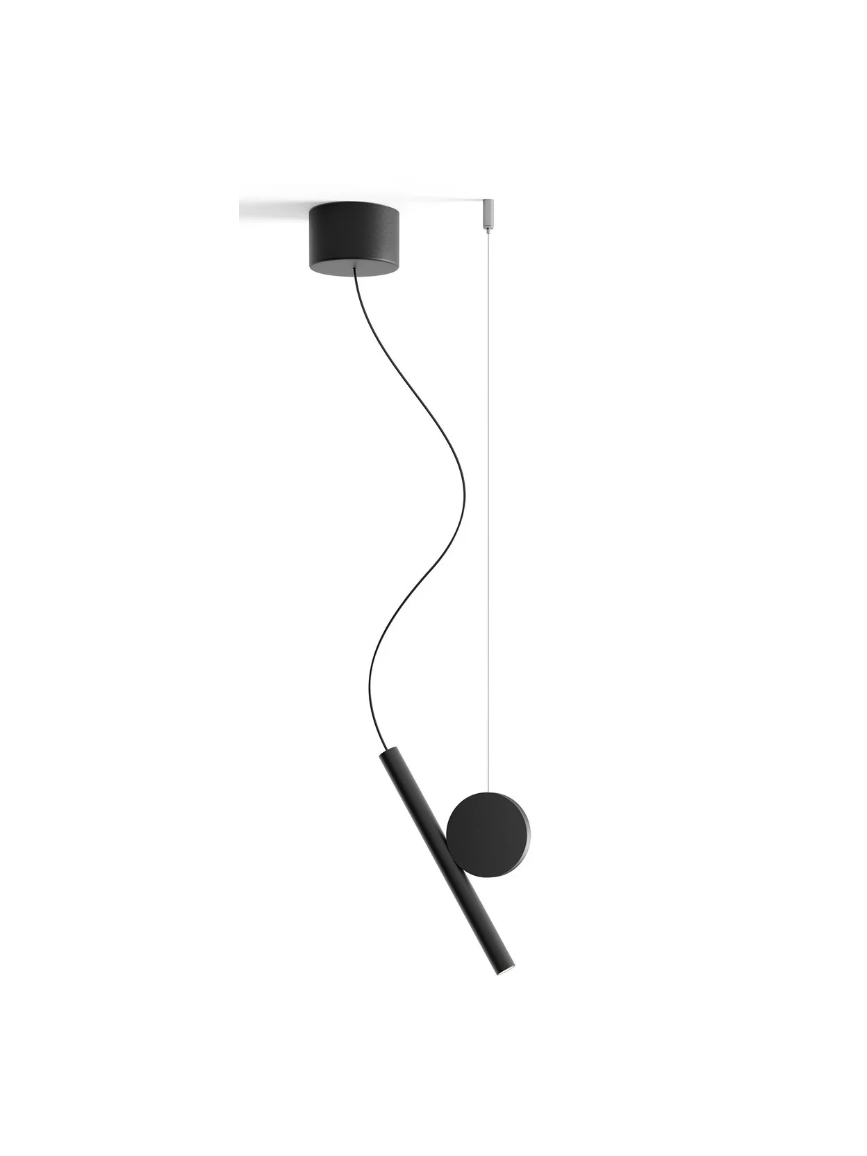 La lampada a sospensione Doi di Luceplan nella configurazione A, in finitura nera, appartiene alla famiglia Doi, progettata da Meneghello Paolelli, che coniuga design essenziale e funzionalità modulare. La sospensione è composta da un cilindro diffusore in alluminio e da un disco, il cui gioco tra contrappesi e agganci magnetici permette di ottenere diverse configurazioni e di orientare il fascio luminoso verso l’alto o verso il basso.