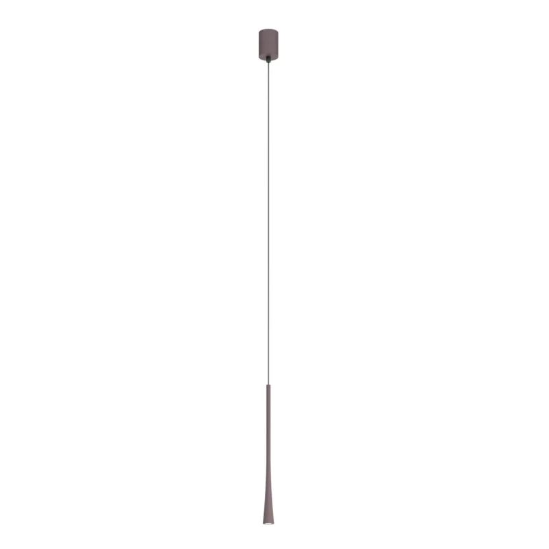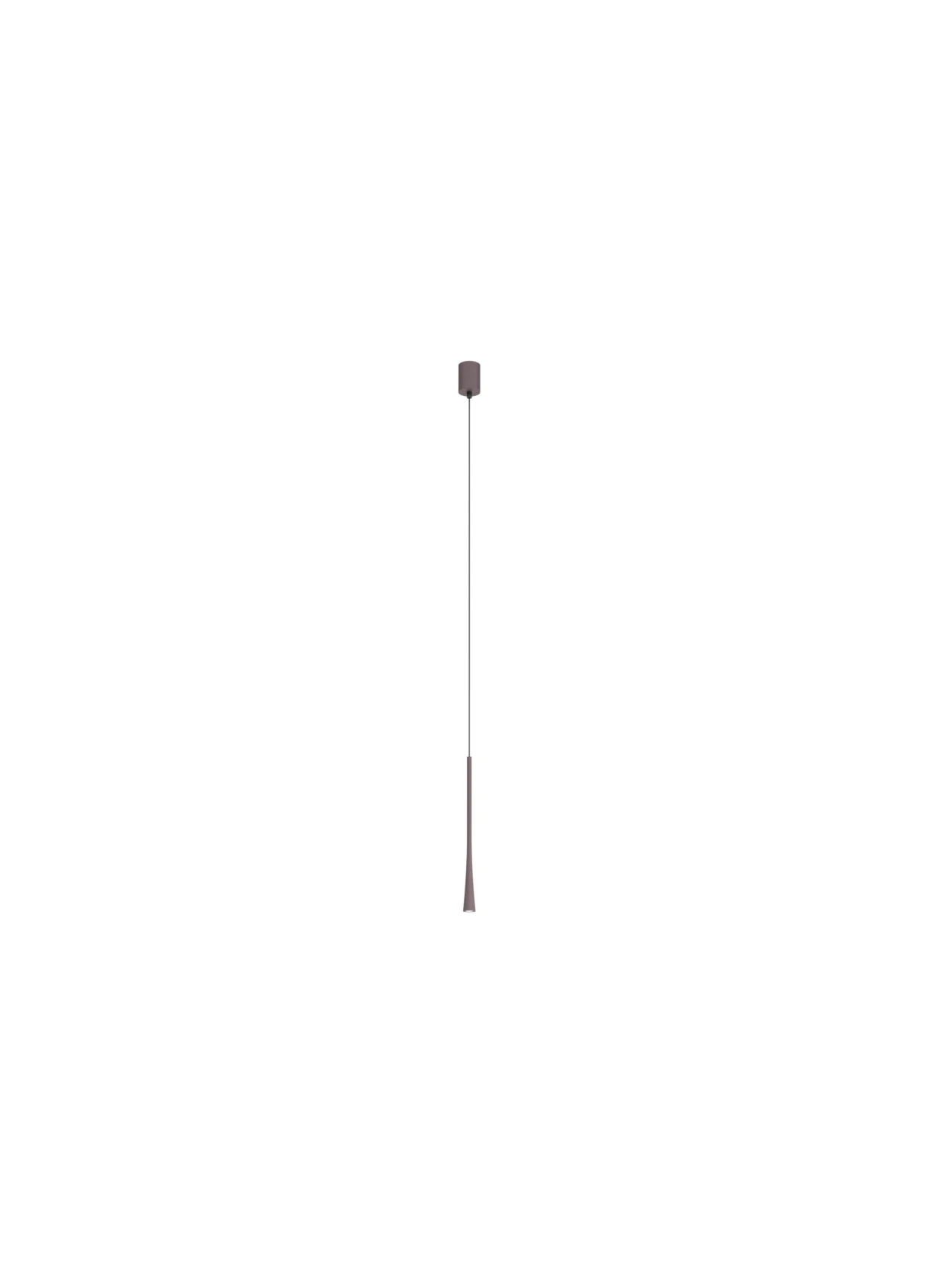 Lampada LED a sospensione con struttura in estruso di alluminio caffè opaco. Diffusore in policarbonato trasparente.