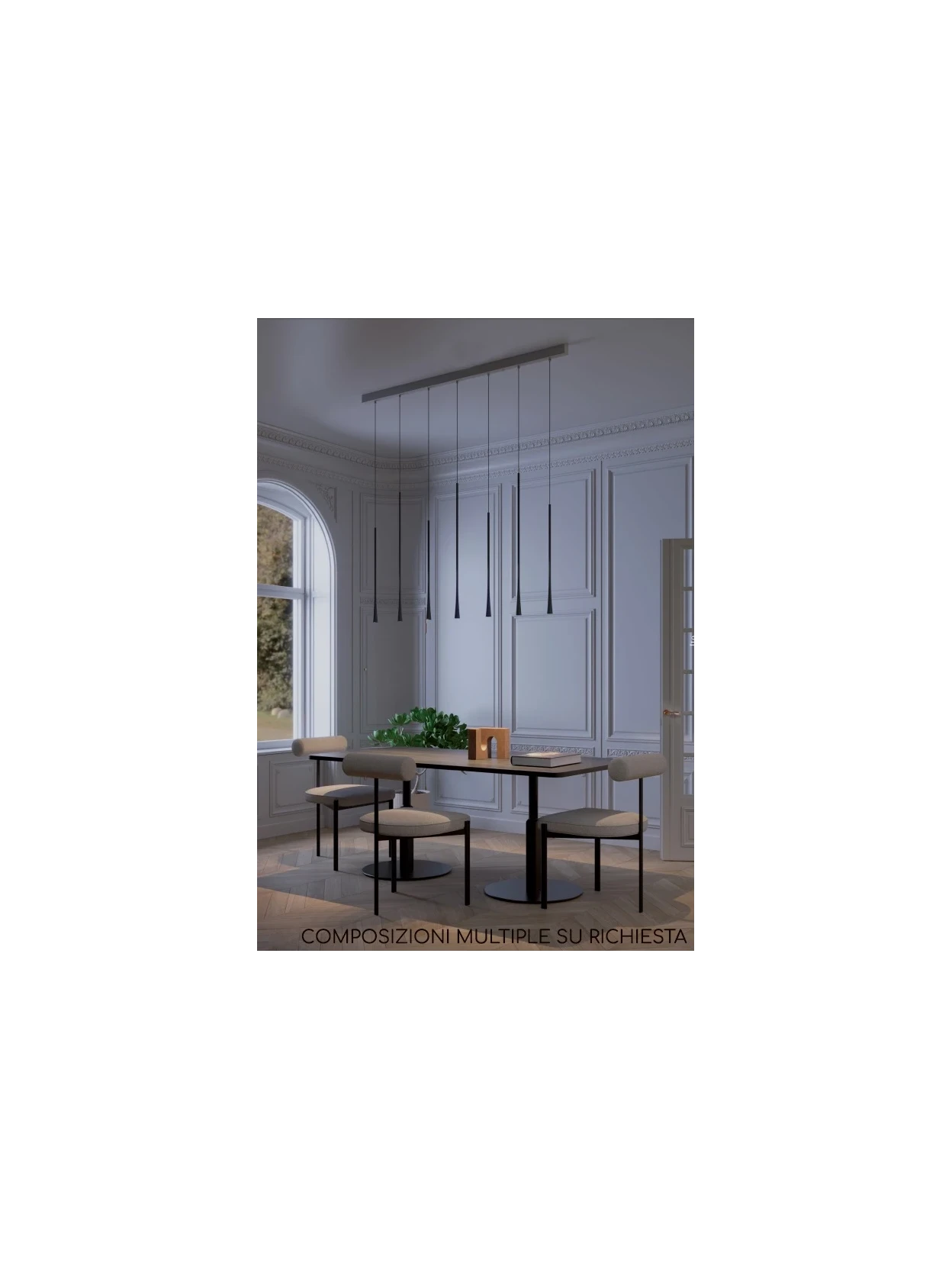 Su richiesta, è possibile realizzare composizioni multiple personalizzate con rosoni rotondi o quadrati, composti da più diffusori, anche di diverse dimensioni e configurati liberamente secondo le vostre preferenze. Questa opzione consente di creare soluzioni scenografiche e su misura, perfette per valorizzare ambienti di rappresentanza o spazi con esigenze particolari di design.