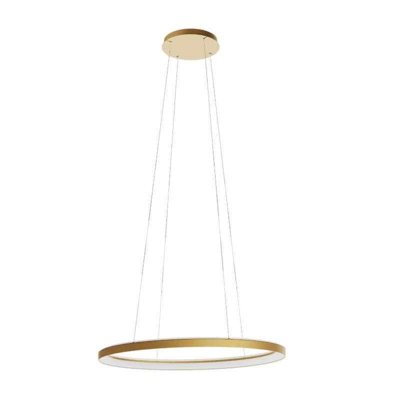 Nobu di Redo Group è una lampada a sospensione dal design essenziale e moderno, realizzata con struttura in alluminio e metallo verniciata in oro opaco. È dotata di tecnologia LED SMD ad alta efficienza, con luce diretta e indiretta, e consente la regolazione sia della luminosità (3 step dimmerabile) sia della temperatura colore, da bianco caldo (3000K) a bianco neutro (4000K). Il diffusore per la luce diretta è in acrilico opalino bianco, mentre la luce indiretta è gestita tramite uno strato in polistirolo, per un’illuminazione morbida e uniforme. Tutti i modelli garantiscono un’elevata resa cromatica (CRI 90), funzionano con alimentazione a 220–240V (50/60Hz), hanno grado di protezione IP20 e appartengono alla Classe II di protezione.