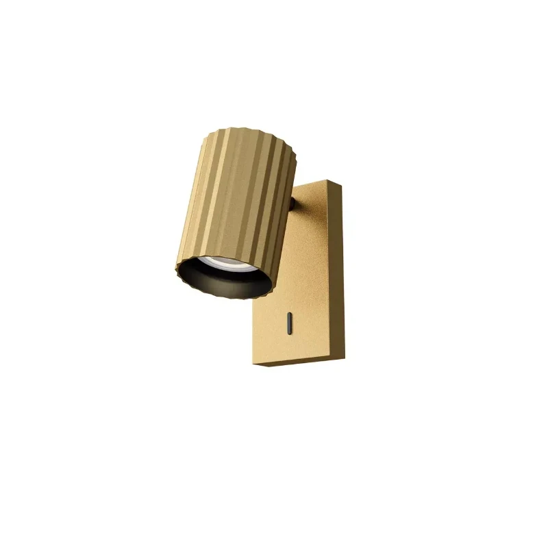 Lampada da parete orientabile con struttura in metallo e alluminio estruso con esterno in bianco, nero opaco o oro opaco e interno in finitura nera.