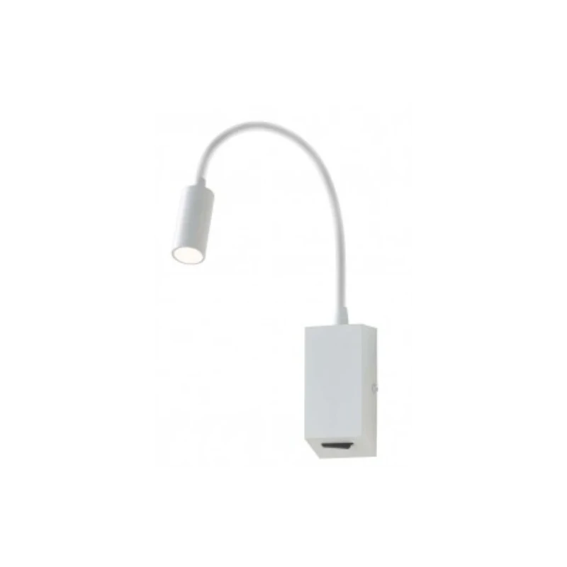 Lampada da parete LED con braccio flessibile realizzata in metallo bianco opaco.