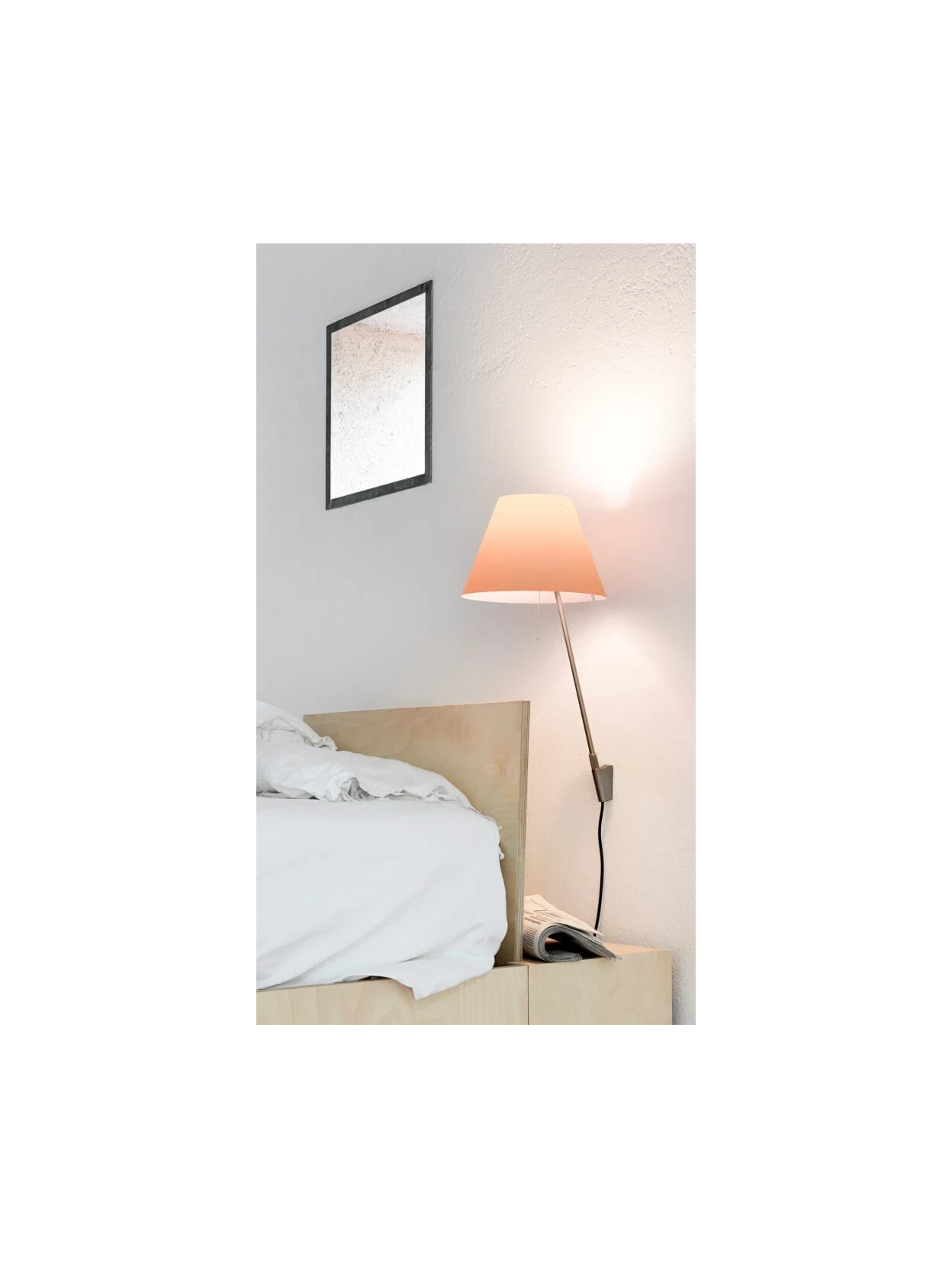 La luce diffusa è accogliente e uniforme, ideale per corridoi, zone living, camere da letto o come punto luce decorativo accanto a divani e testate letto. L’accensione on/off a parete garantisce un utilizzo pratico e immediato, rendendo questa lampada perfetta anche in ambienti contract o professionali. Grazie all’ampia scelta cromatica del paralume, Costanzina consente di personalizzare lo spazio mantenendo un’estetica pulita ed elegante.