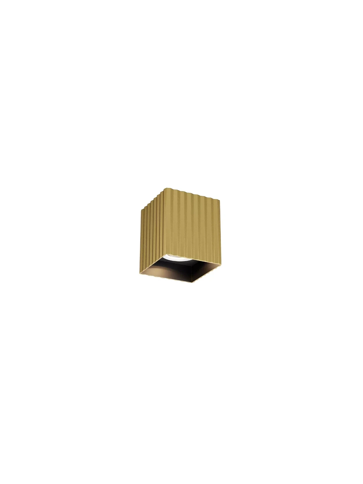 Lampada da soffitto quadrata realizzata in metallo e alluminio anodizzato in finitura nero, oro o bianco opaco con interno nero.