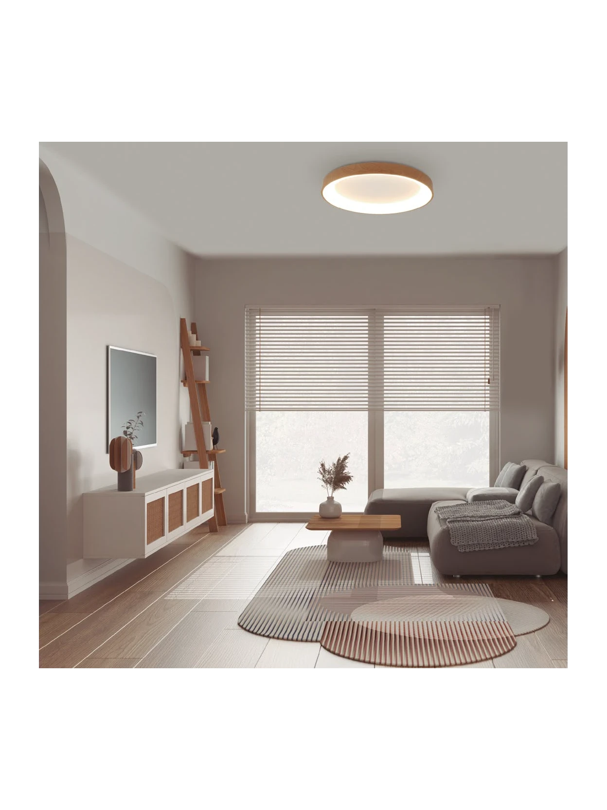 Disponibile in diverse dimensioni, la plafoniera Niseko II effetto legno garantisce illuminazione uniforme e potente, senza abbagliamento, adatta a stanze di ogni metratura. Il CRI ≥80 e la durata del LED fino a 30.000 ore assicurano comfort visivo, efficienza energetica e affidabilità nel tempo.