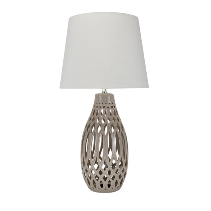Henriette - Lampada da Tavolo Sferica Fusion in Porcellana - Tortora