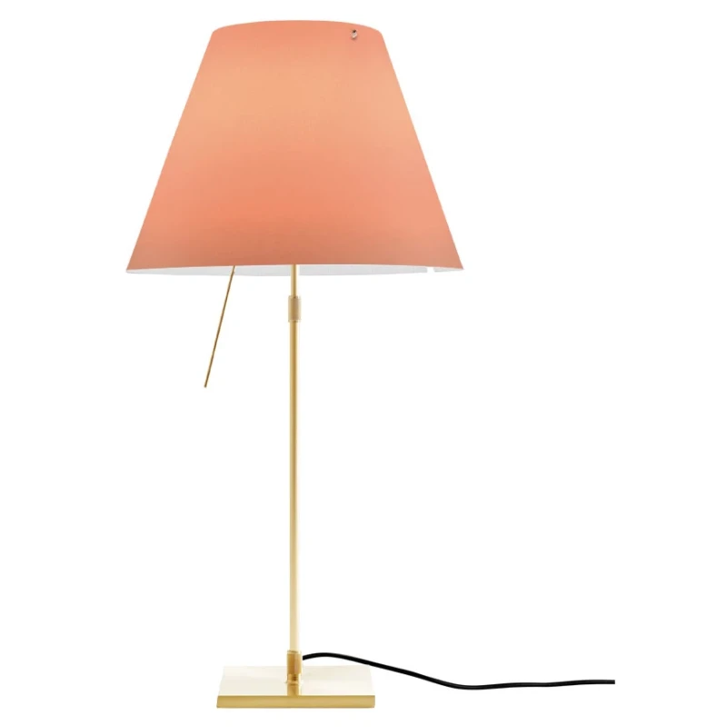 La versione di Costanza con stelo telescopico in ottone e dimmer on board esprime un’eleganza ricercata, capace di impreziosire qualsiasi ambiente con una presenza luminosa discreta ma sofisticata. Il corpo in alluminio con raffinata finitura ottone dona calore e carattere, mentre la struttura estensibile da 760 a 1100 mm permette di modulare con precisione l’altezza e la distribuzione della luce. Il dimmer integrato consente di regolare l’intensità luminosa con un gesto semplice, creando scenari morbidi e avvolgenti o più brillanti a seconda del momento. Il paralume in policarbonato serigrafato, disponibile in molteplici colori, diffonde una luce uniforme e confortevole, ideale per living eleganti, zone studio, camere da letto e ambienti hospitality di alto livello. Costanza con stelo telescopico in ottone e dimmer on board unisce design, funzionalità e un’eleganza preziosa, diventando un elemento d’arredo illuminante capace di arricchire ogni spazio con stile e armonia.