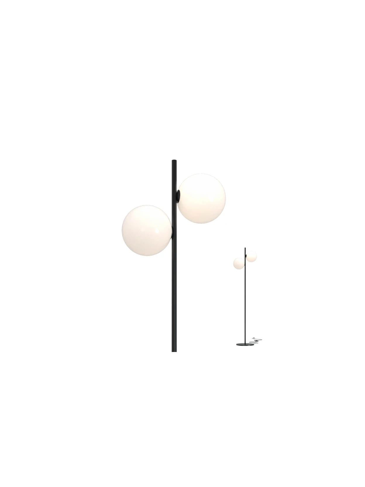 Talis di Redo Group è una lampada da terra per interni che unisce la sobrietà del nero opaco alla raffinatezza del vetro soffiato bianco opale, creando un punto luce dal carattere elegante e contemporaneo. La struttura in metallo, solida e ben proporzionata, sostiene due diffusori che diffondono una luce morbida e uniforme, ideale per creare un’atmosfera accogliente in salotti, camere o spazi di lettura. Compatibile con due lampadine E27 fino a 42W ciascuna, offre la possibilità di scegliere liberamente la fonte luminosa più adatta, personalizzando intensità e tonalità in base alle esigenze. Il design slanciato e pulito la rende perfetta per completare l’arredamento con un tocco di stile discreto, integrandosi con facilità in contesti moderni o classici.