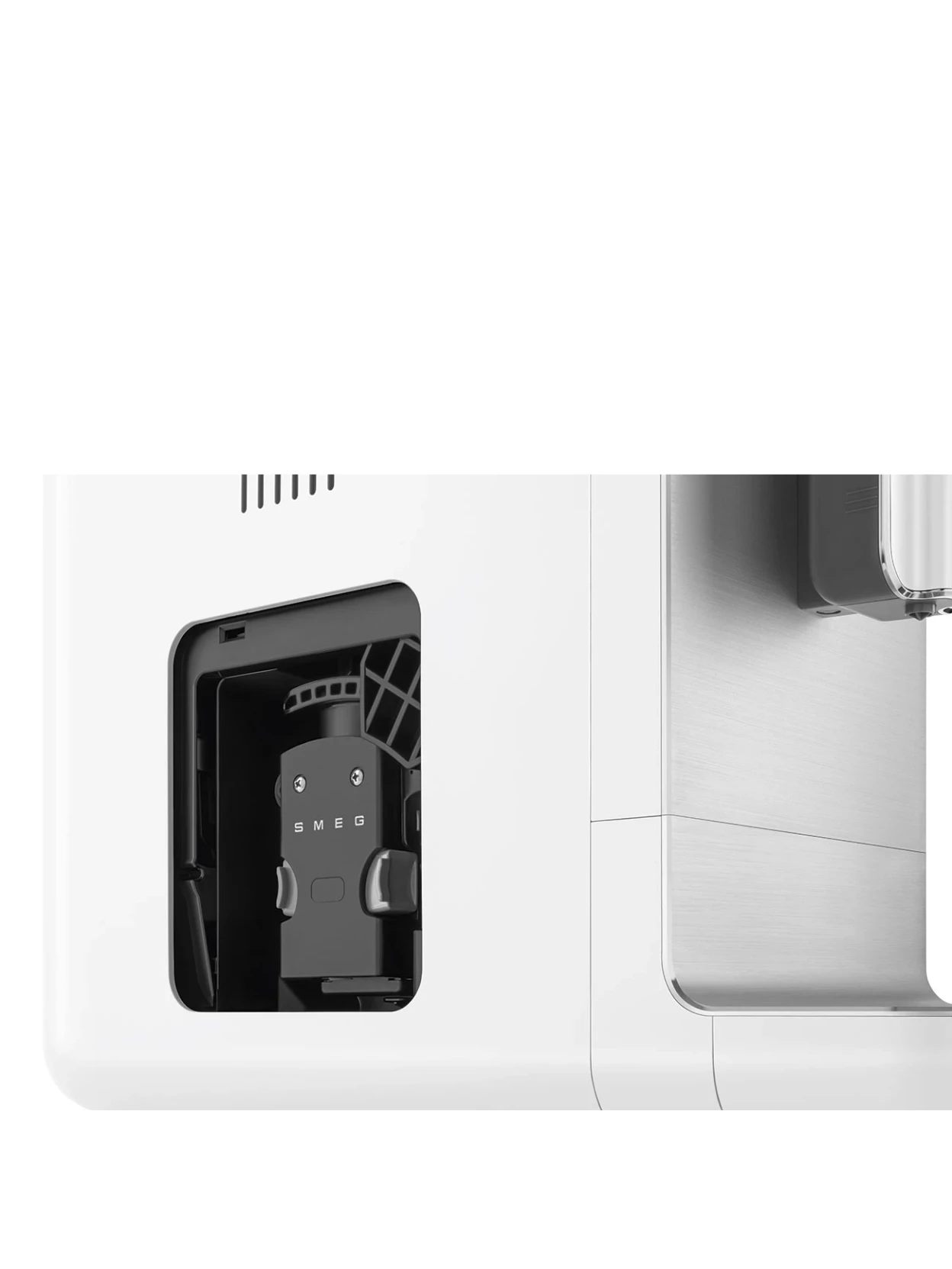 Macchina da caffè automatica Smeg bianca: eleganza senza tempo e prestazioni professionali a casa tua. Pompa 19 bar, macinacaffè integrato, lancia vapore in acciaio inox e serbatoio 1,4 L per espresso e cappuccino perfetti. Multibeverage con 6 bevande, acqua calda e funzione vapore.