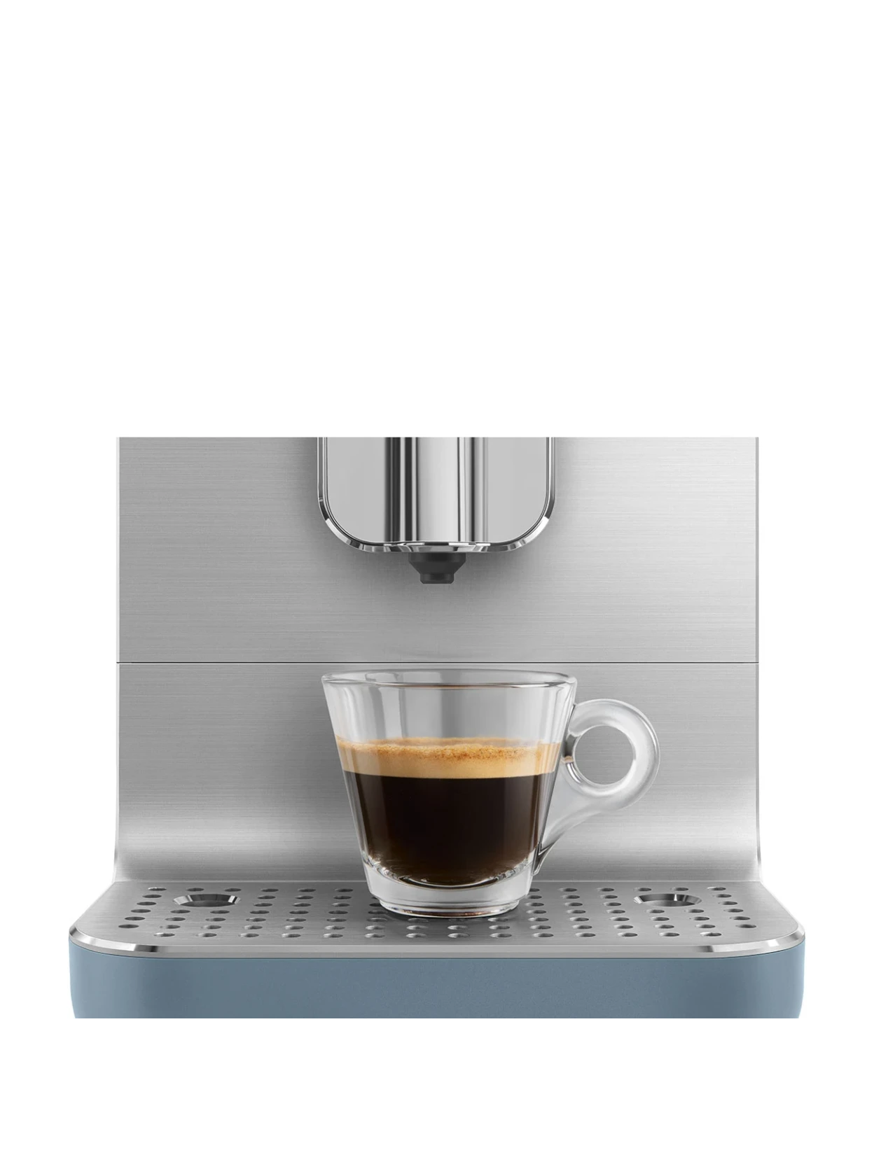 La macchina da caffè automatica con sistema latte Storm Blue della Collezione Aesthetic firmata Smeg ti permette di gustare espresso e bevande latte cremose con un solo tocco. Dal chicco alla tazzina, macinacaffè integrato, pompa da 19 bar e sistema latte automatico si uniscono in un design compatto ed elegante, perfetto per portare il bar a casa tua.