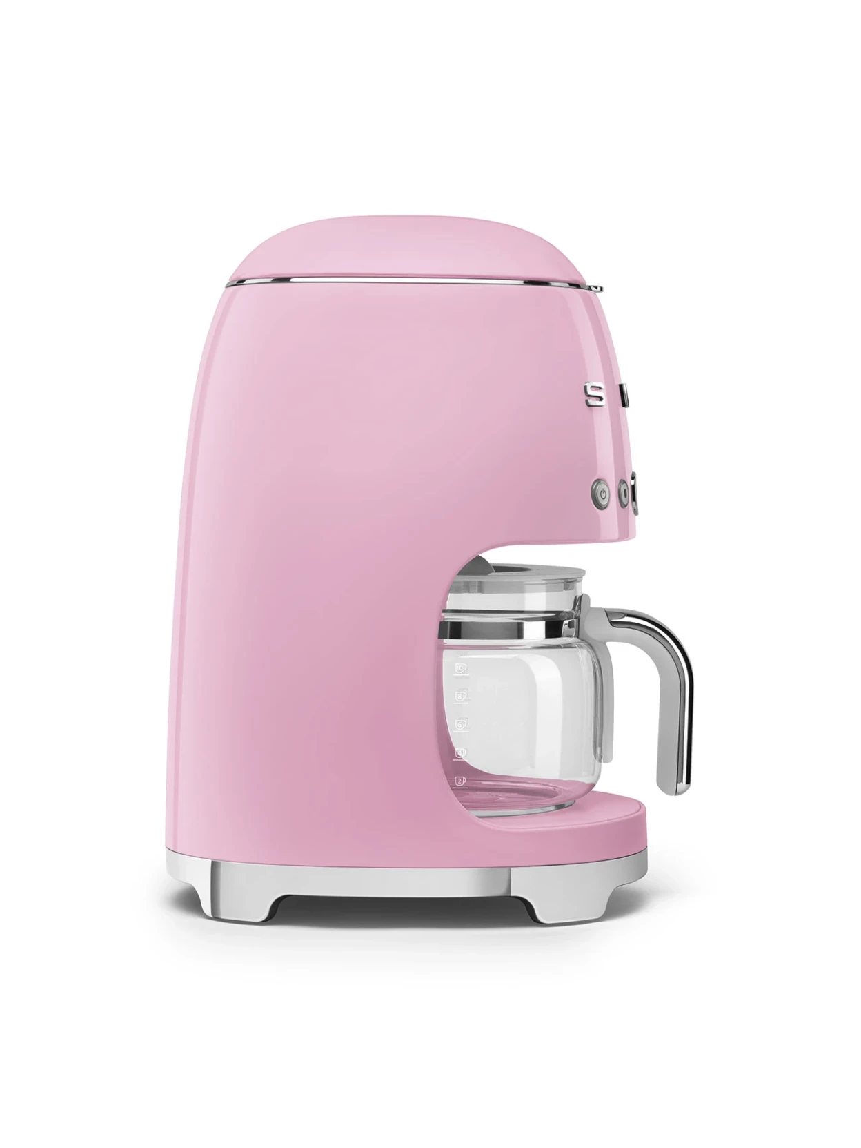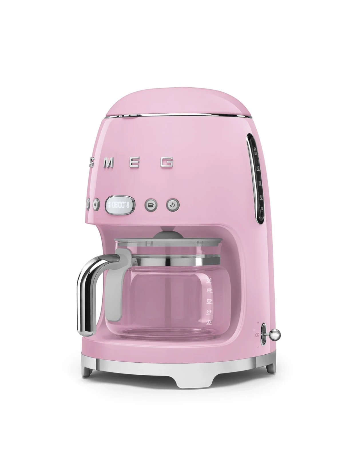 La Macchina da Caffè Filtro in rosa lucido di Smeg unisce lo stile retrò del 50’s Style alla praticità moderna. Eroga fino a 10 tazze di caffè filtro con intensità regolabile e funzione Autostart per svegliarti con il profumo del caffè. Mantiene caldo il caffè fino a 40 minuti, rendendola perfetta per ogni cucina colorata e di design.