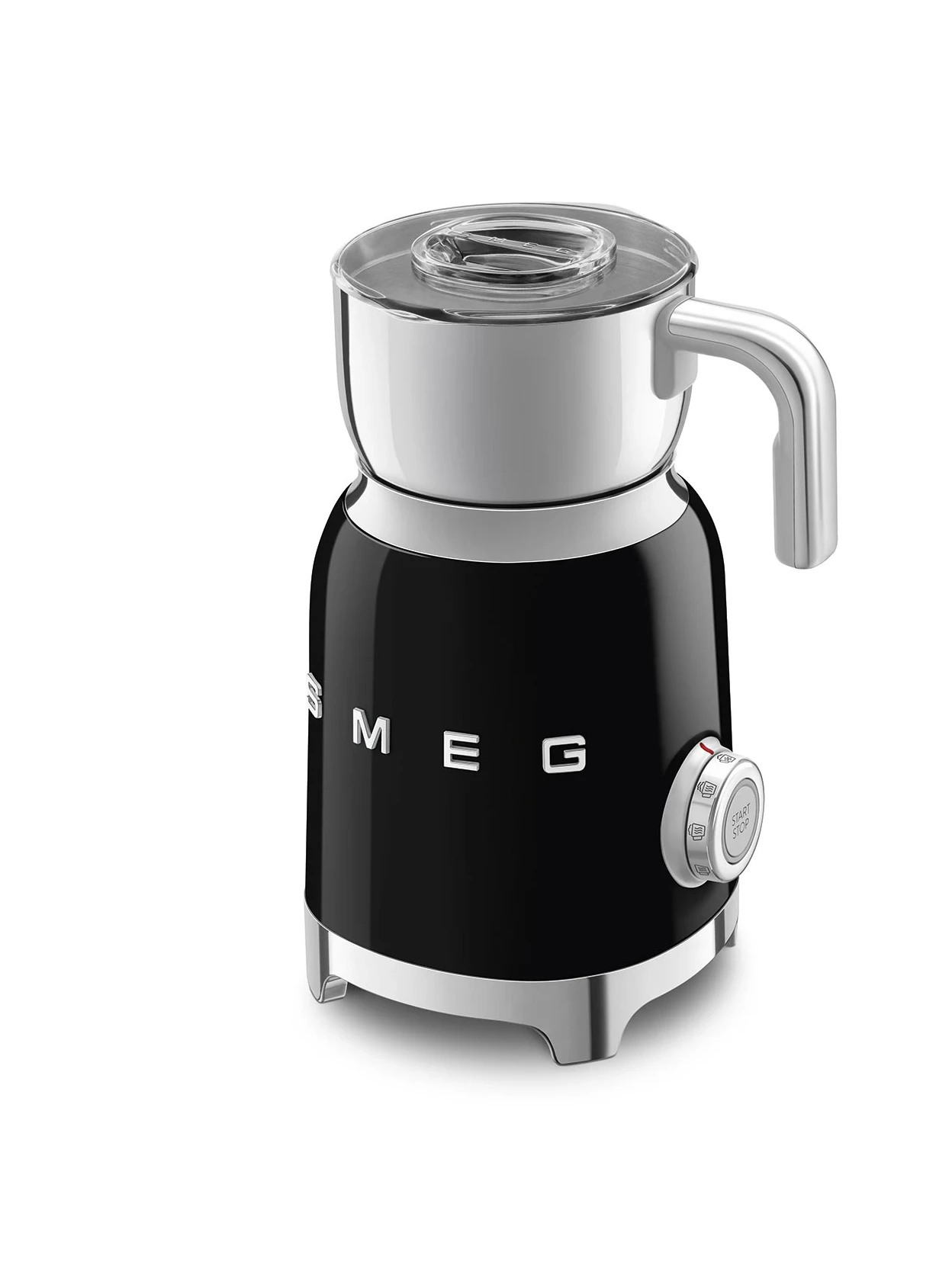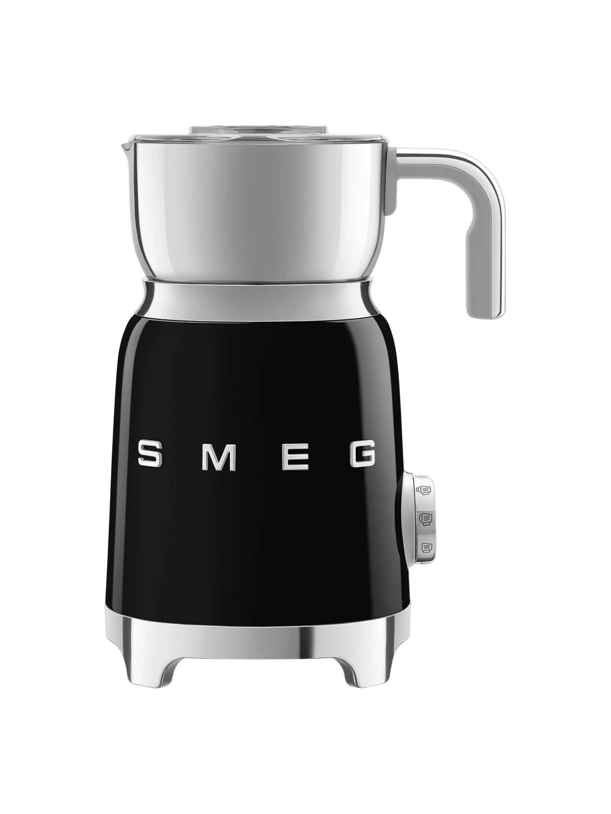 Il montalatte nero lucido con estetica 50’s Style di Smeg è un vero oggetto di design, pensato per chi desidera prestazioni professionali racchiuse in un’icona di stile. Il sistema di riscaldamento a induzione garantisce un riscaldamento uniforme e una montatura del latte sempre perfetta, attivandosi solo dopo la selezione del programma e spegnendosi automaticamente a fine ciclo per la massima sicurezza.