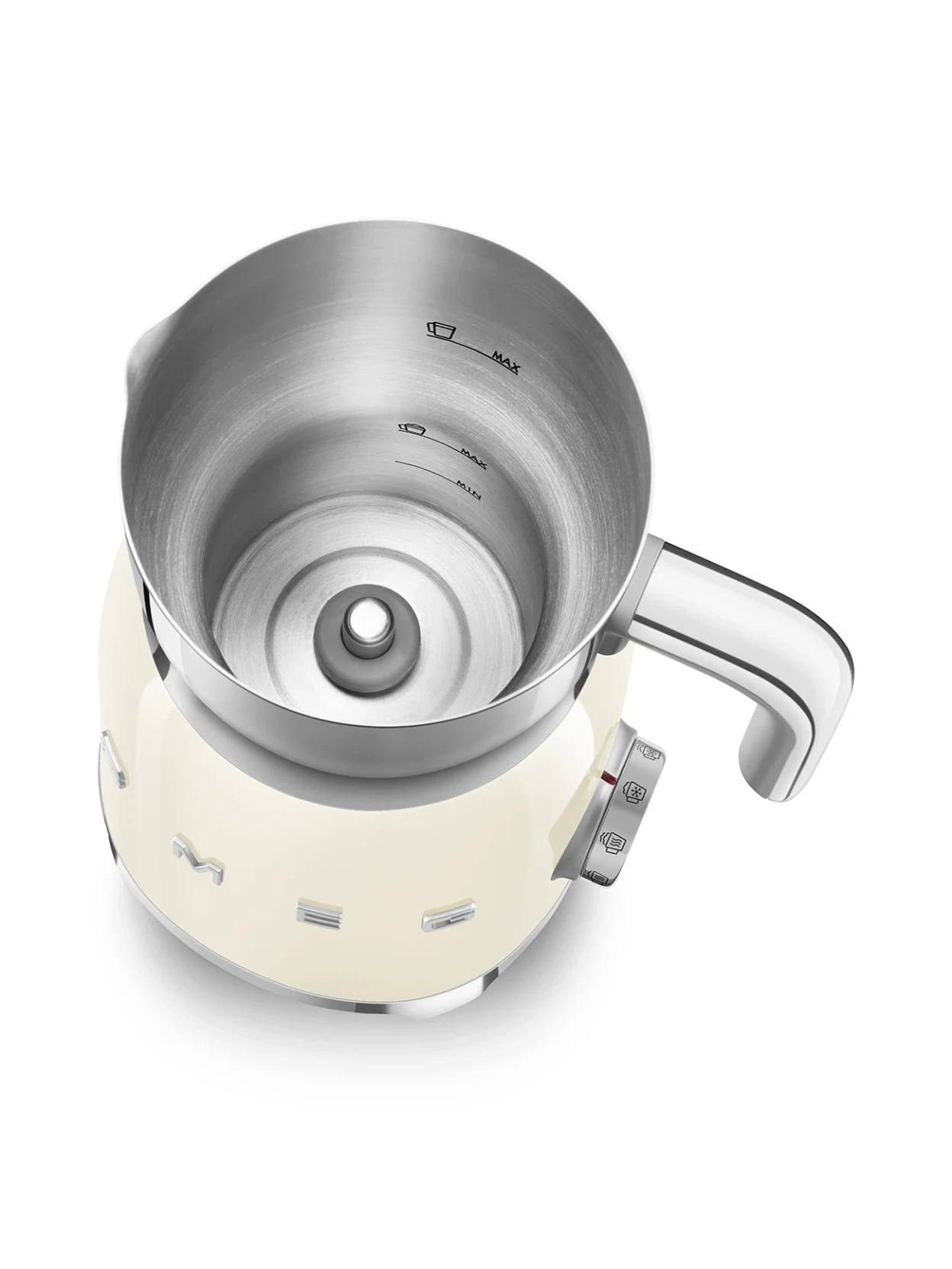 Elegante, luminoso e senza tempo: il montalatte multifunzione di Smeg color panna lucido con estetica 50’s Style porta in cucina un tocco di raffinatezza vintage, unendo design iconico e tecnologia a induzione per bevande perfette, calde o fredde.
