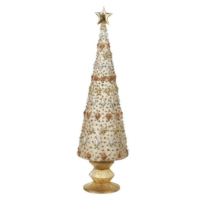 Albero di Natale dorato con stelle tricolore H 45 cm di Henriette. Una decorazione elegante e luminosa che dona un tocco festoso e raffinato ai tuoi ambienti natalizi.
