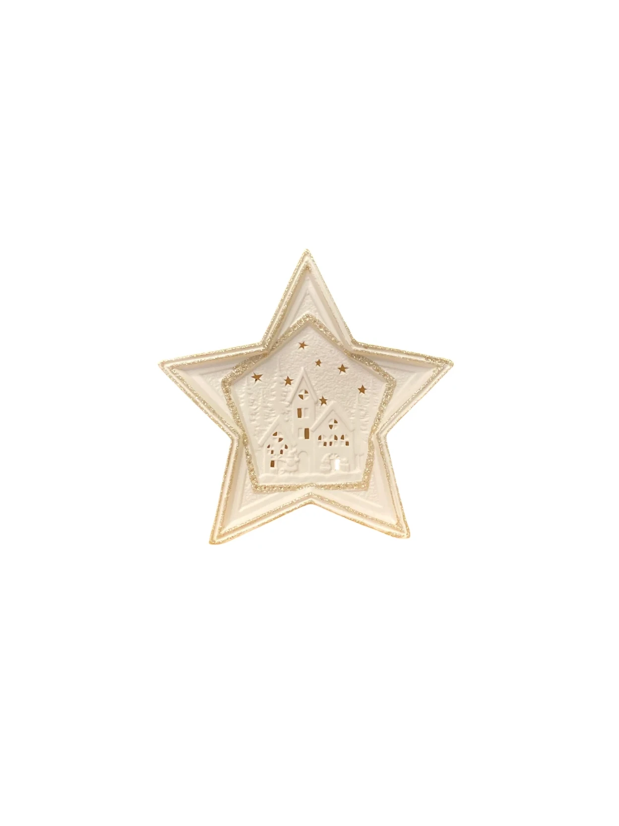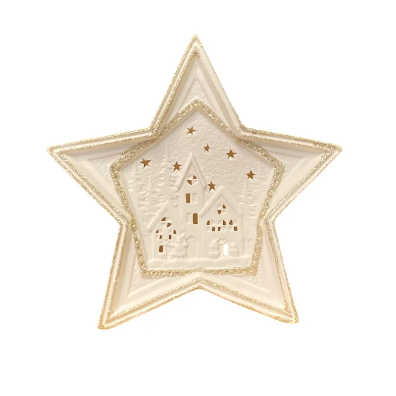 Henriette - Decorazione Stella con Luci - Bianco Opaco / Oro