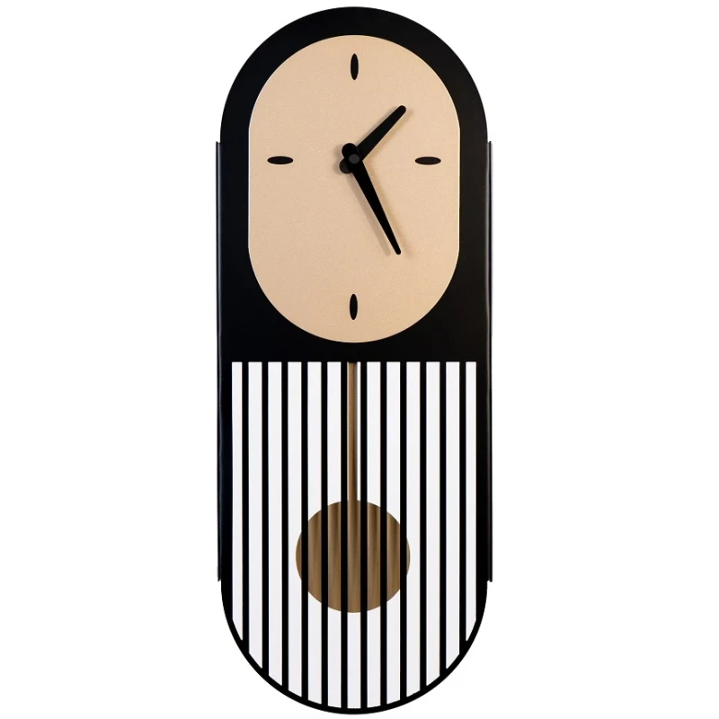 Pendolino è un orologio da parete con movimento a pendolo, realizzato in metallo nei toni nero e oro metallizzato. Design moderno e artigianalità Made in Italy.