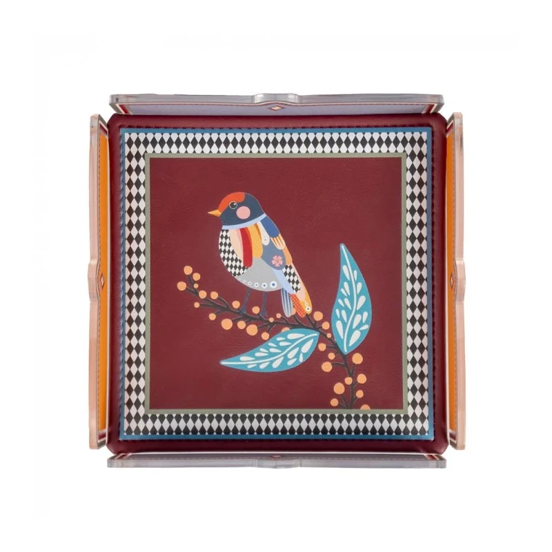 Il vuotatasche Sogno Uccellino è un raffinato complemento d’arredo che unisce estetica e praticità in un oggetto unico e originale. Pensato per organizzare con eleganza chiavi, monete e piccoli oggetti, è perfetto per arredare con stile l’ingresso di casa, la scrivania in ufficio o un angolo del soggiorno. Le linee morbide e la combinazione tra il cuscinetto in ecopelle colorata e i bordi in cristallo acrilico trasparente con grafiche vivaci lo rendono un dettaglio di design capace di valorizzare qualsiasi ambiente.