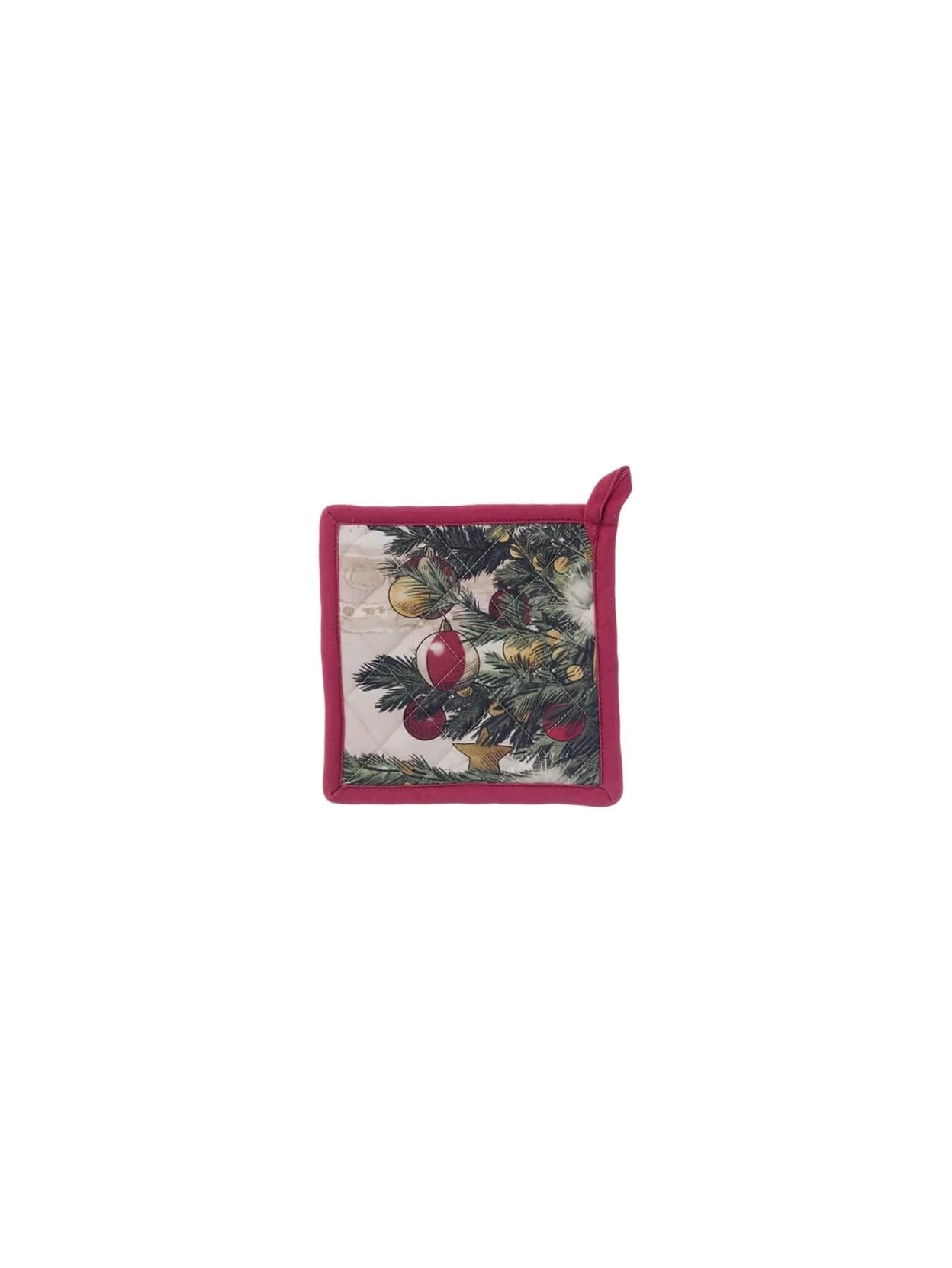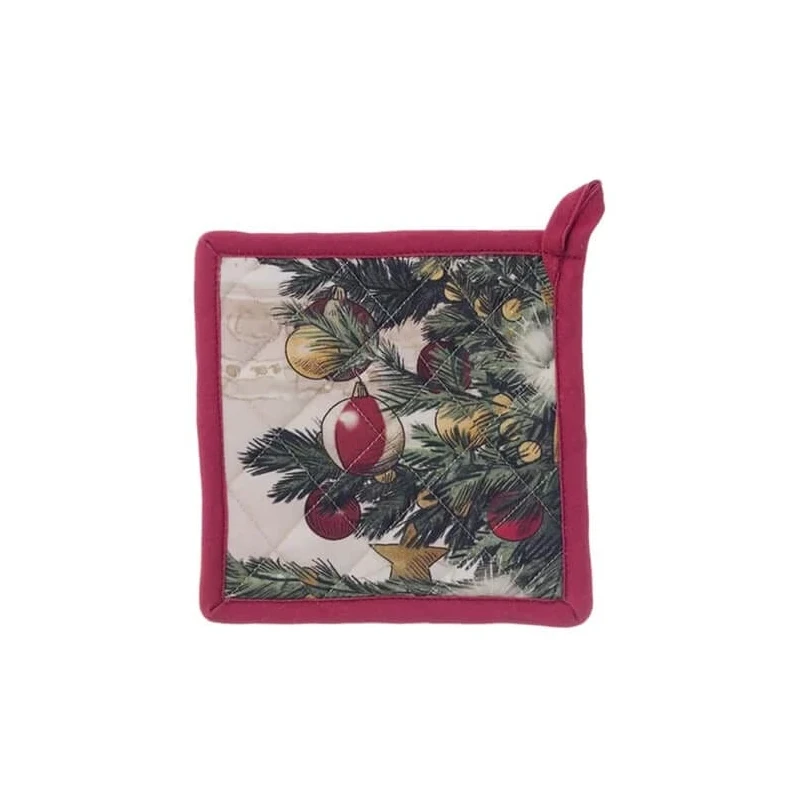Porta lo spirito delle feste anche in cucina con la presina Blanc MariClò della collezione Favola di Natale. Realizzata in 100% cotone, unisce praticità e stile grazie al bordo rosso e alla stampa frontale di un elegante albero di Natale. Il retro decorato con fiocchi rossi stampati, aggiunge un tocco festoso e coordinato perfetto per la stagione natalizia. Con la sua dimensione di 20x20 cm, è ideale per proteggere le mani dal calore e per decorare la cucina con il fascino romantico e vintage tipico di Blanc MariClò. Perfetta come idea regalo o per completare la collezione Favola di Natale.