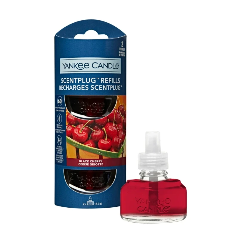 Ricarica per diffusore elettrico Scentplug dalla fragranza Black Cherry capace di catturare la dolcezza irresistibile delle amarene mature, combinando il succoso aroma di ciliegia con il calore cremoso della mandorla e un tocco speziato di cannella, per un profumo fruttato, caldo e avvolgente. Ideale per chi ama un aroma goloso e raffinato