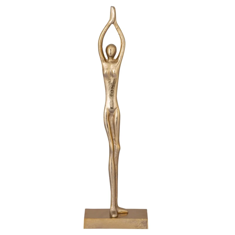La scultura Saaqi di PTMD raffigura una donna danzante in elegante posa. Realizzata a mano in alluminio fuso dorato, unisce arte e design in un oggetto decorativo raffinato e senza tempo.