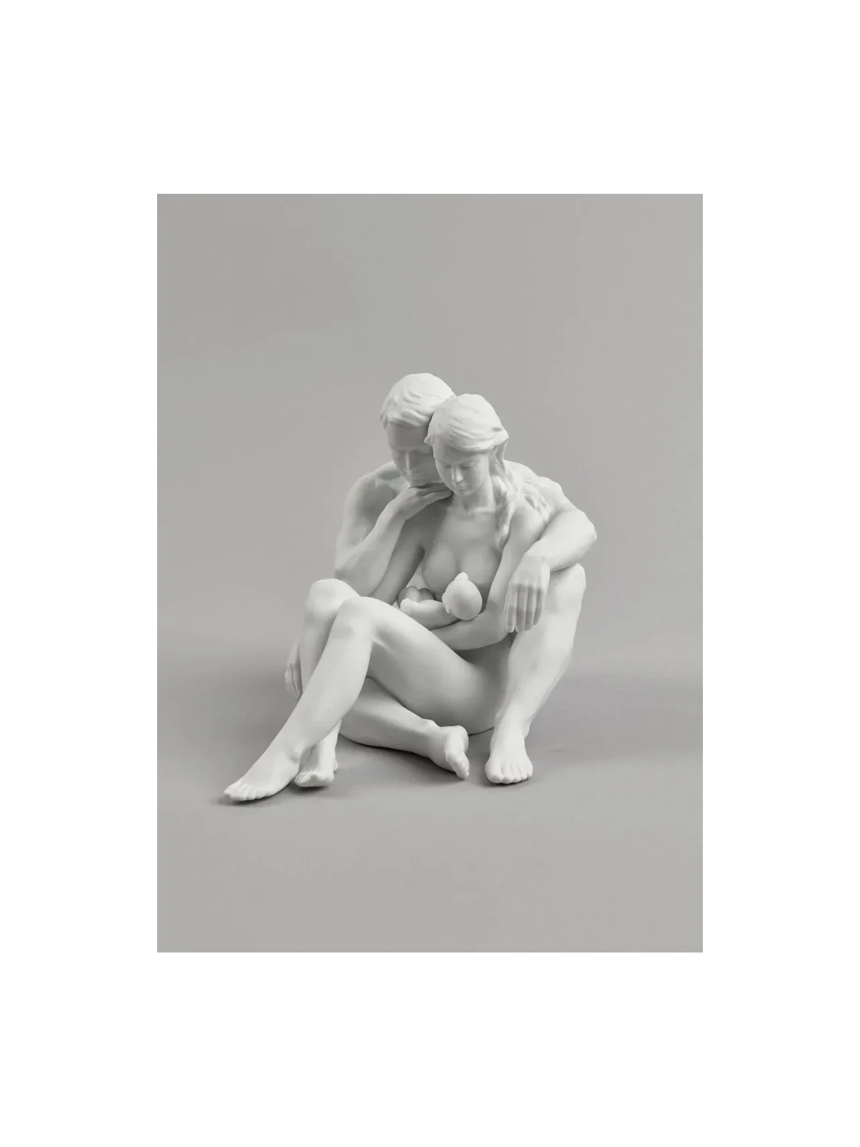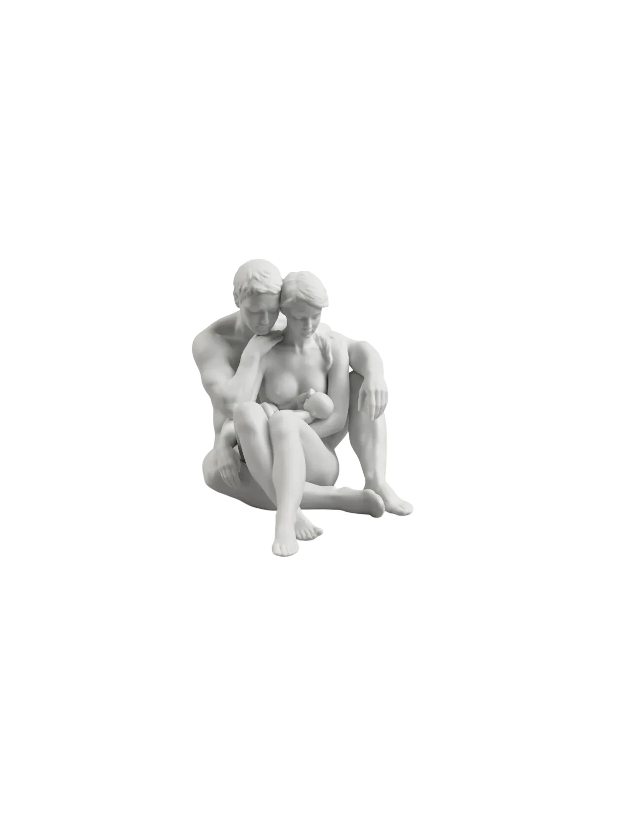 Raffinata scultura " Famiglia l'essenza della vita" in porcellana bianca opaca, firmata Ernest Massuet, che rappresenta una famiglia composta da madre, padre e bambino. Un simbolo di amore, armonia e vita da collezionare o regalare.