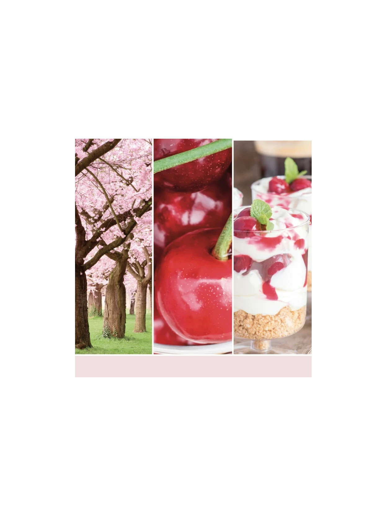 Cera da fondere dalla fragranza che rievoca una dolce esplosione fruttata: ciliegie succose, lamponi e mandorle si fondono con morbide note di panna alla vaniglia e soffici nuvole rosa pastello.