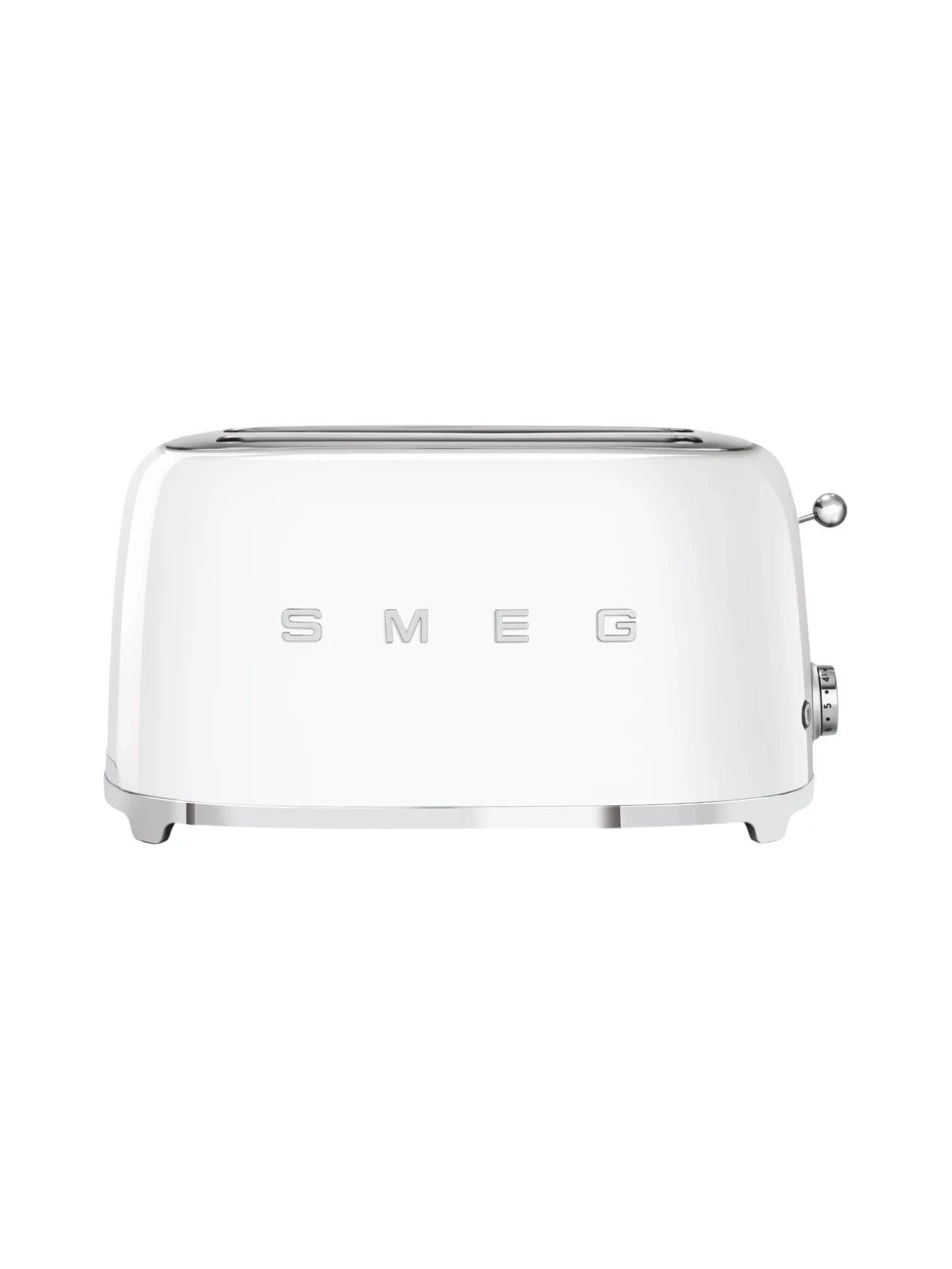 Il tostapane 2 x 4 firmato Smeg in bianco lucido con estetica 50’s Style porta eleganza e funzionalità nella tua cucina. Con scomparti extra lunghi per tostare fino a 4 fette contemporaneamente, offre 6 livelli di brunitura e funzioni scongelamento, riscaldamento e bagel per una colazione pratica e di stile.