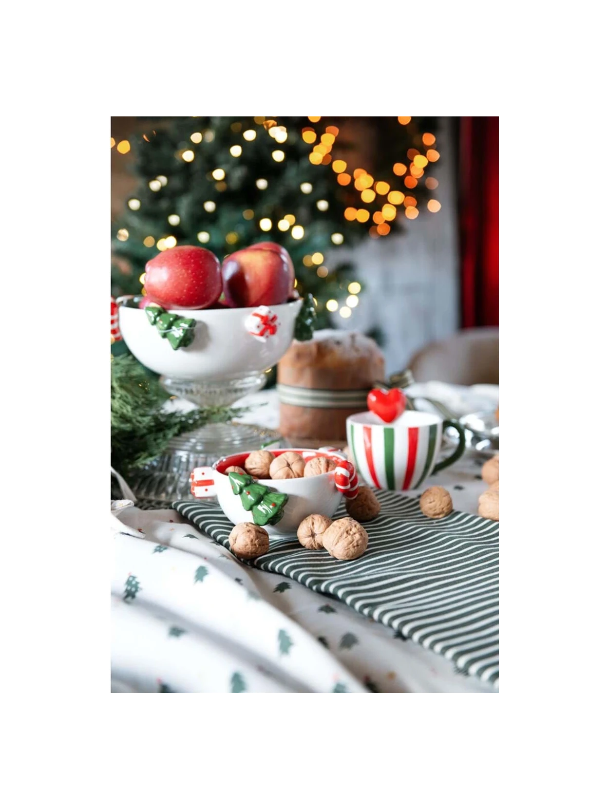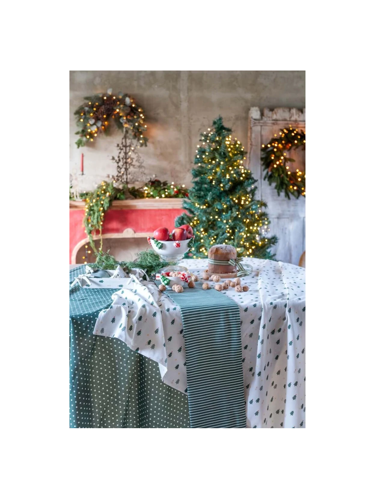 Rendi la tua tavola natalizia elegante e accogliente con questa tovaglia dal design semplice e festivo. Realizzata in 70% cotone e 30% fibra sintetica, unisce morbidezza e resistenza, rendendola pratica da stendere e facile da pulire durante le feste. Lo sfondo panna dona luminosità alla tavola, mentre i delicati alberelli natalizi stampati creano un’atmosfera calda e gioiosa. Disponibile in due dimensioni 140 x 180 cm e 140 x 270 cm, è perfetta sia per tavoli piccoli che per tavoli più lunghi.