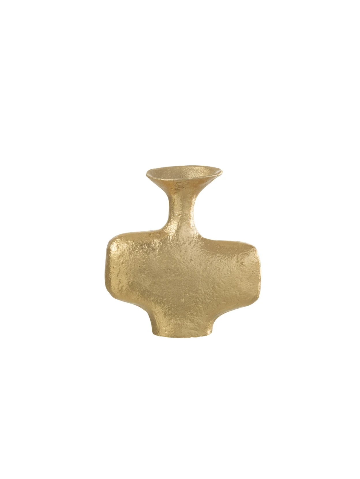Vaso decorativo realizzato in alluminio color oro, dal design moderno ed elegante. Altezza 21 cm, ideale per interni. Non adatto all’uso esterno.