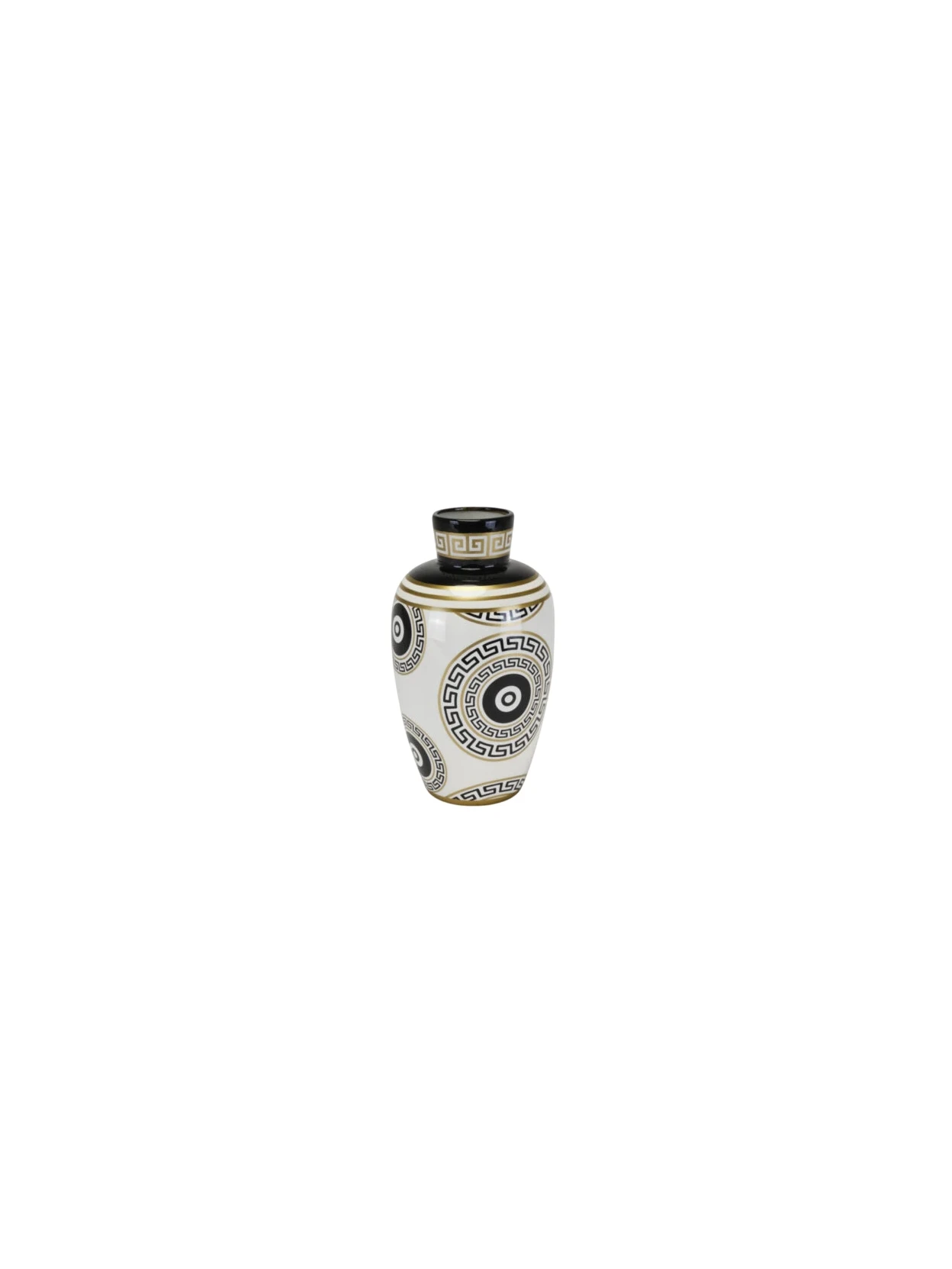 Anfora Greek in ceramica bianca, nera e oro, Ø19 H33 cm. Elegante decorazione dallo stile classico, perfetta per valorizzare ogni ambiente.
