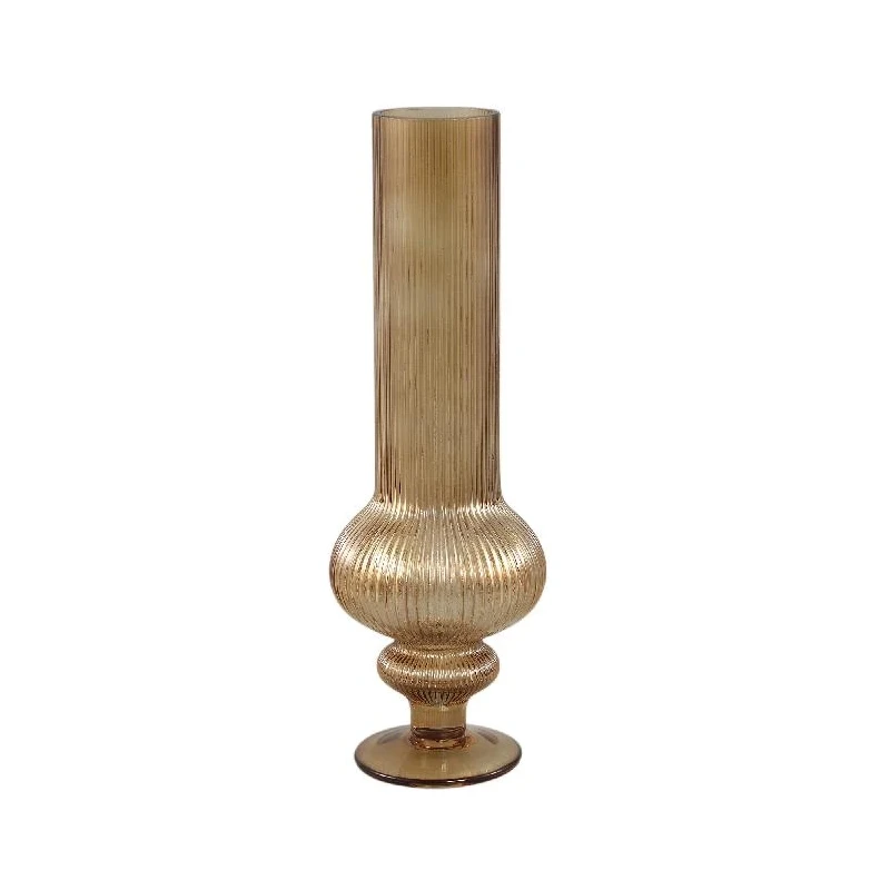 PTMD - Vaso Rotondo in Vetro Cannettato Keala - Ambra