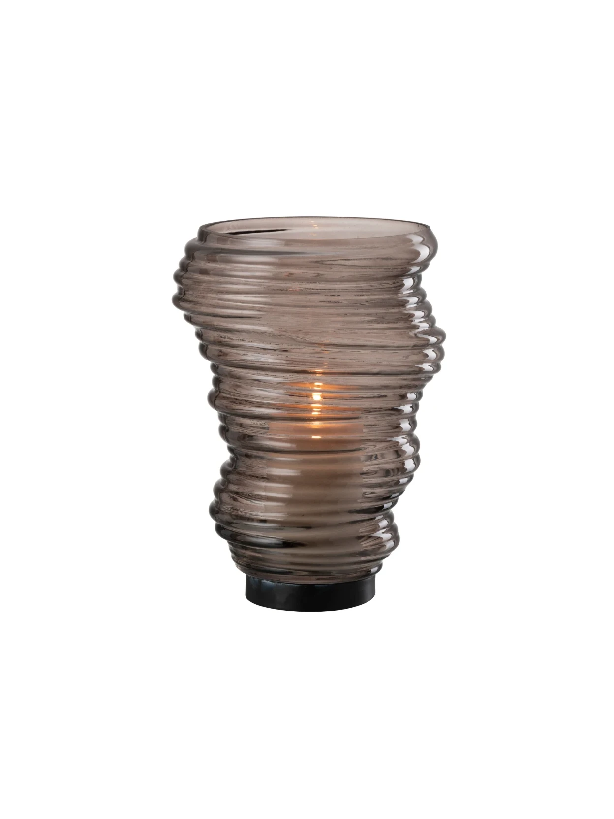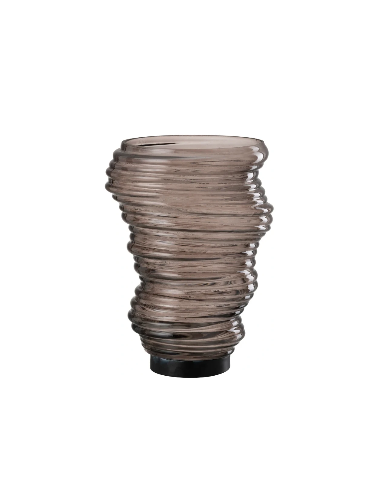 Vaso Tornado in vetro grigio, design moderno e raffinato. Ideale come complemento d’arredo per interni ed esterni, perfetto per valorizzare fiori, candele e composizioni decorative.